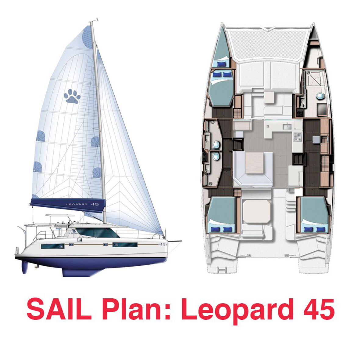 The Sunsail 454, also known as the 4500 at The Moorings, is based on the proven Leopard 45. This catamaran, now replaced by the 46, was very popular, with nearly 400 units produced in 7 years. This Simonis & Voogd design strikes a good balance between comfort and performance, and remains easy to manage, even short-handed. Admittedly, in charter configuration with Dacron® sails, fixed propellers and no downwind sails, the Leopard 45 will seem a little suppressed in light airs... there’s nothing to stop you, if you find a suitable second-hand sail, from giving it some wings!