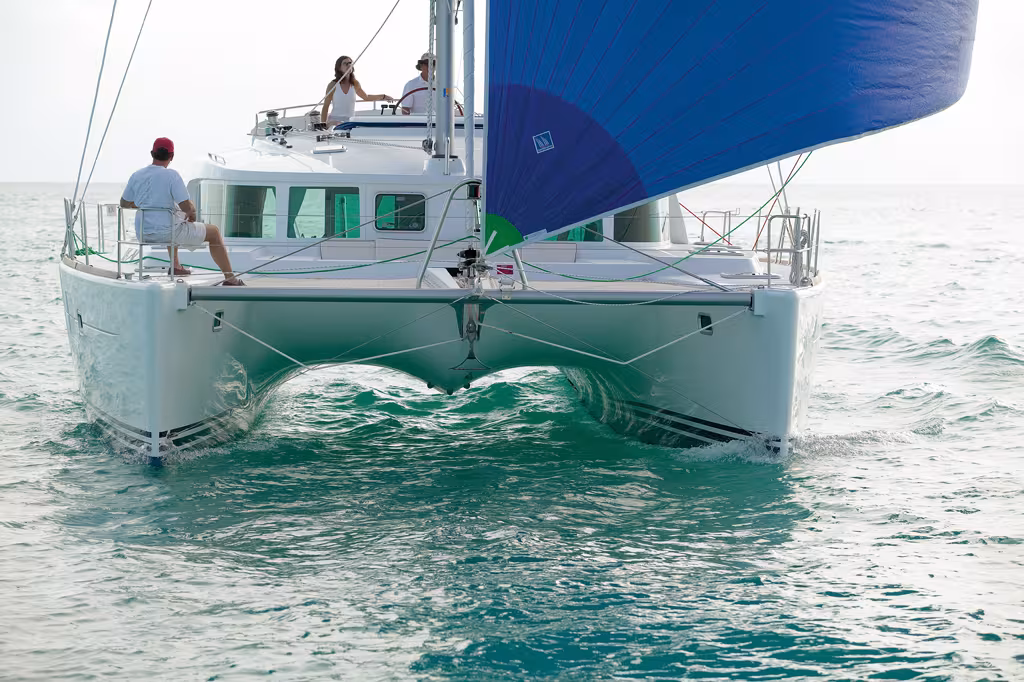 Take the flying bridge, which is an innovation on any boat less than 45 ft long. Add a ‘gull’s wing’ shape to the underside of the bridge deck. Mix in enough volume for really comfortable accommodation, a different way of arranging the external living space and decent performance for a cruising boat, and you have the Lagoon 440, a revolution in the small world of cruising multihulls.