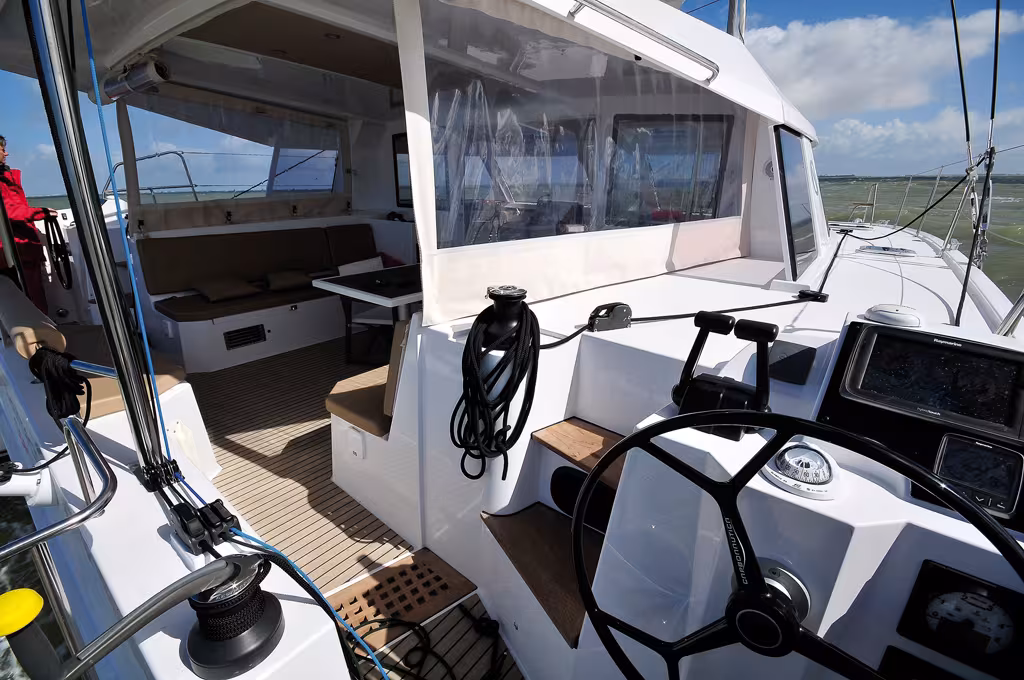 Well protected by the soft partitions, the cockpit is transformed into a genuine second salon when the weather dictates. Clever!