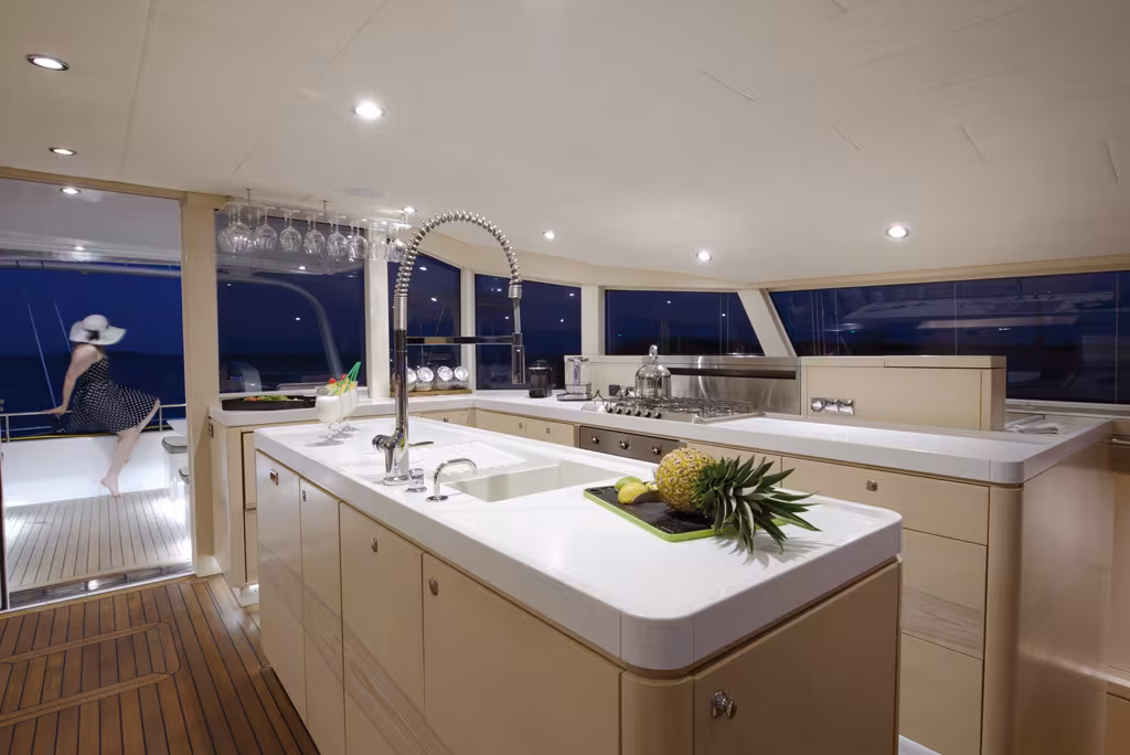 The idea was to propose a multihull which is fast and luxurious, and as ultra-comfortable at sea as it is in port no matter what latitude, and able to be sailed by a short-handed crew. There will therefore be much electrical assistance. Particular attention has been paid to the standard of construction, to sound and thermal insulation, as well as safety. Access around the day areas and to all the essentials for handling the boat and panoramic visibility are all priorities.