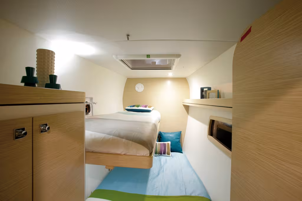 The cabins are light and airy. Great in the tropics, yet comfortable and cozy in poor weather.