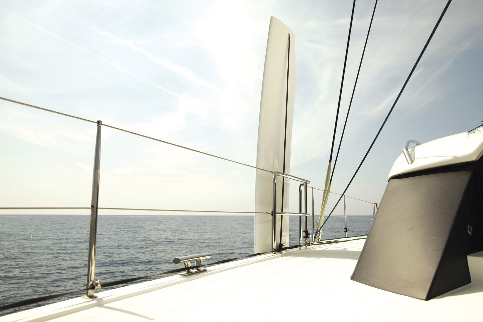 The standards of cruising catamaran design are now fixed around a box-rule which is only evolving bit by bit, as the leading builders have, through their commercial success, built up their brand image and the concept. So it’s quite difficult and even risky for a builder to try and escape this box-rule in terms of design. However, some succeed, and this is the case with the Slyder 49. The silhouette has retained the elegance of her predecessor, the 47: sporty overall lines, aerodynamic coachroof, modern and generous sail plan. The hulls are distinguished by beautifully designed topsides that elegantly break the codes without torturing the construction. The main elements (an upper rib, reveals for the portlights, the bows, and finesse of the daggerboards) make her more attractive than most of her competitors. The quality of manufacture is reflected in the visual perception thanks to the superb paintwork: the catamaran catches the light magnificently. The high bridgedeck clearance promises good performance. As for the slightly asymmetrical axis of the hulls, this provides the small advantage of camber when the sails are loaded up. The hydrodynamics, superb to the eye, benefit from the qualities of a light platform - our test multihull is a super-equipped demonstration model, with many options and is consequently a tonne heavier, but a reasonable specimen should come in at around 11 tonnes laden displacement). The quality of the infused sandwich is excellent in all accessible corners - this catamaran is certainly very stiff.
