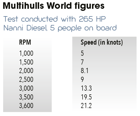 From ahead, the Pinball reveals two sharp bows, while it’s impossible to suspect it’s a multihull if you look at the powercat from astern.