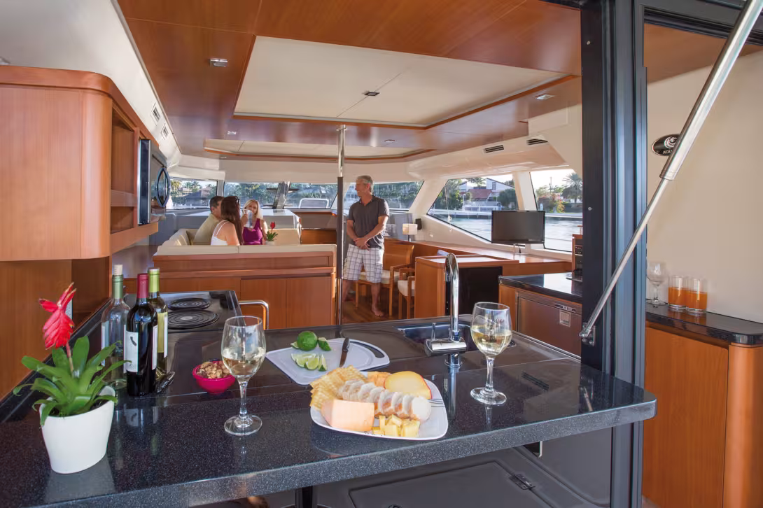 Le numéro 100 est un Aquila 44. L'aventure des catamarans Aquila a commencé en 2012 avec l'Aquila 38 construit en Chine chez Sino Eagle Group exclusivement pour MarineMax et sa nouvelle base de charter aux BVI. Aujourd'hui, la gamme comprend trois catamarans à moteur (36, 44 et 48 pieds), en attendant la présentation officielle de l'Aquila 60 en 2019.