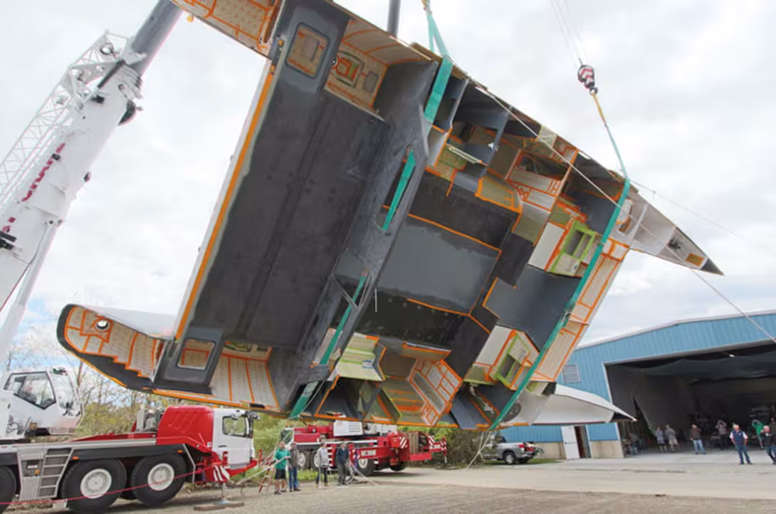 Un bateau tout carbone dont le gréement est particulièrement original : un mât autoporté de 100 pieds (30 m) sur chaque coque ! Un gréement déjà utilisé par Chris White (et d'autres architectes) et qui est particulièrement performant au portant, allure de prédilection des catamarans de croisière…