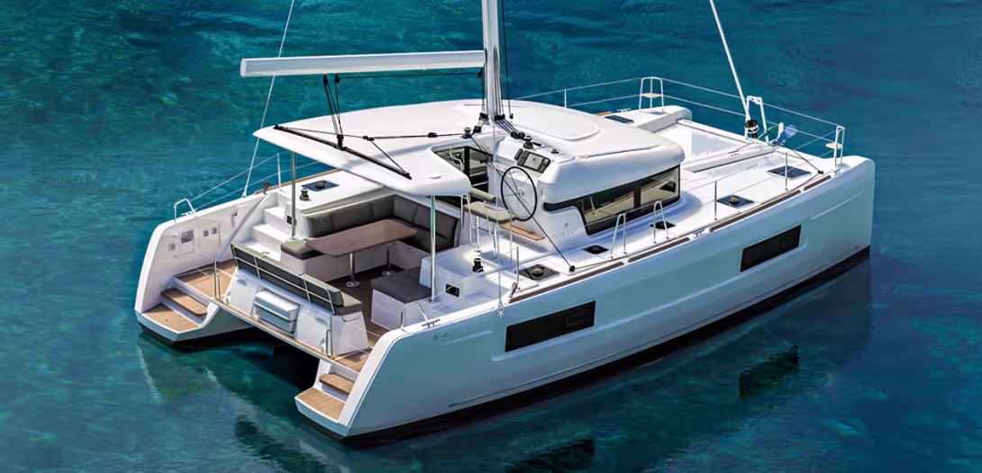 Le Lagoon 40 reprend les codes du très réussi 42, et notamment son bel espace carré-cockpit – le design est toujours signé Nauta. Il est bien sûr équipé du gréement reculé et de son foc autovireur. A découvrir lors des salons de septembre.