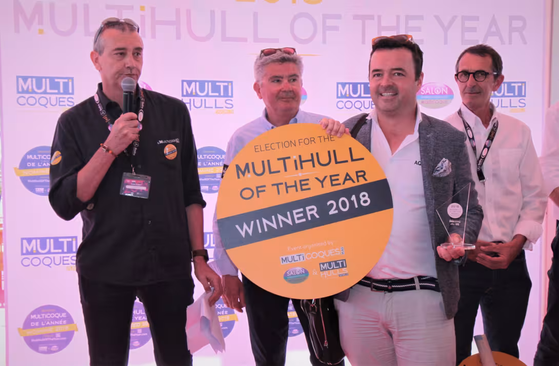 La liste des Nominés pour l'élection du multicoque de l'année 2019 sera rendue publique le jour de l'ouverture du salon nautique d'Annapolis (USA (le 4 octobre 2018). Pour pouvoir être nominé à cette élection, les nouveaux multicoques doivent être mis à l'eau entre les salons du multicoque 2018 et 2019 (donc entre mi avril 2018 et mi-avril 2019)