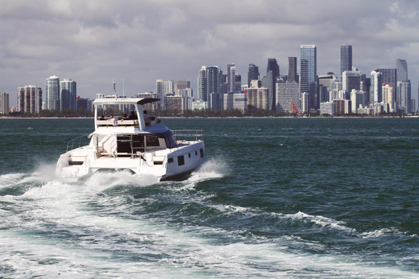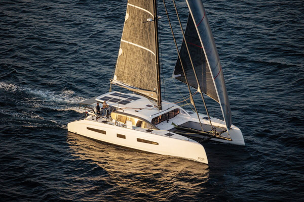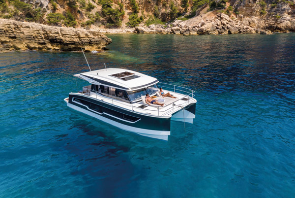 L’International Multihull Show est également l’occasion unique de découvrir les dernières nouveautés – ici, le Nautitech 44 Open barré par notre rédac’chef.
