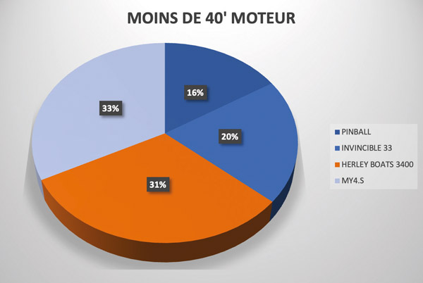 Deux cabin-cruisers et deux opens se sont affrontés dans cette catégorie, et ce sont les modèles à cabine qui ont su s’imposer. Le MY4.S, le nouveau Sedan signé Fountaine Pajot, l’emporte d’une courte tête devant l’Herley Boats 3400 (33 % contre 31 %).