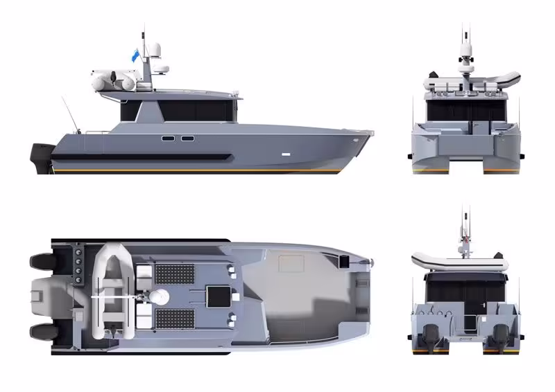 Albatross Marine Design, basé en Thaïlande, propose un powercat compact destiné à des expéditions ou un usage professionnel.