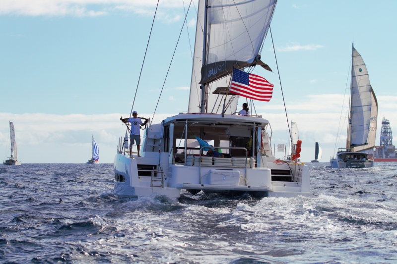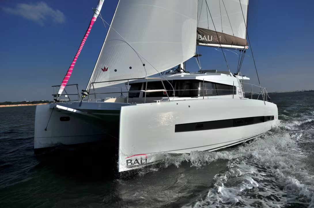 Petit aparté sur les deux Bali : le 4.0 et le 4.1 sont quasiment les mêmes modèles. Le second hérite juste d’un passage en dur à l’arrière, entre les deux jupes. Ces catamarans, au moment de leur lancement, étaient clairement destinés à la location. Mais leur confort a convaincu des propriétaires, séduits par la qualité de vie à bord. A priori, ces Bali sont plutôt optimisés pour le cabotage et la croisière semi-hauturière ; s’élancer pour une transat reste envisageable – de nombreux Bali de cette taille ont traversé l’Atlantique sans encombre, à l’image du 4.0 illustré ici au départ de l’ARC.