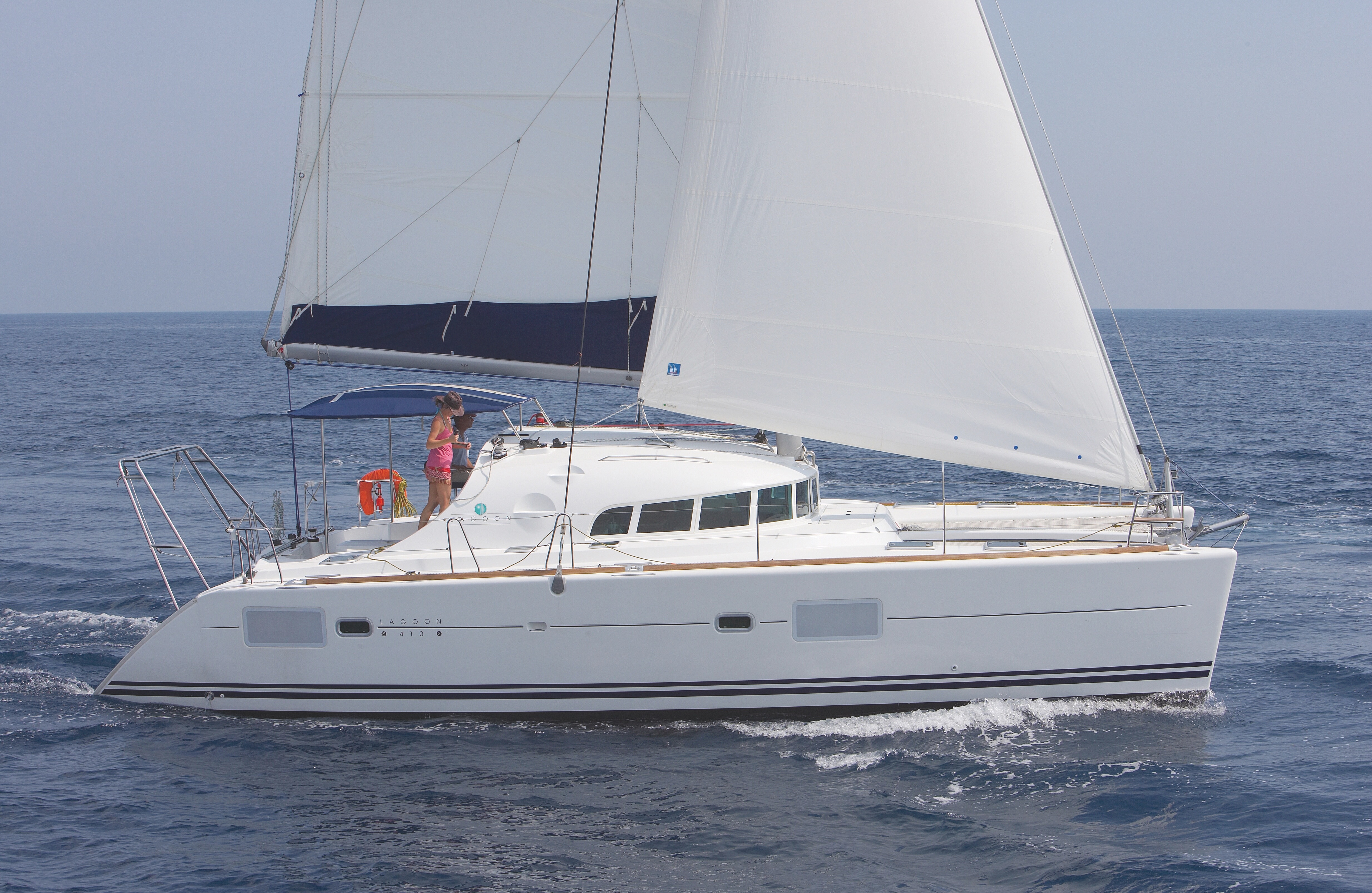 Le Lagoon 410 est le premier des Lagoon avec vitrages verticaux ; un excellent catamaran mais tout de même assez âgé.