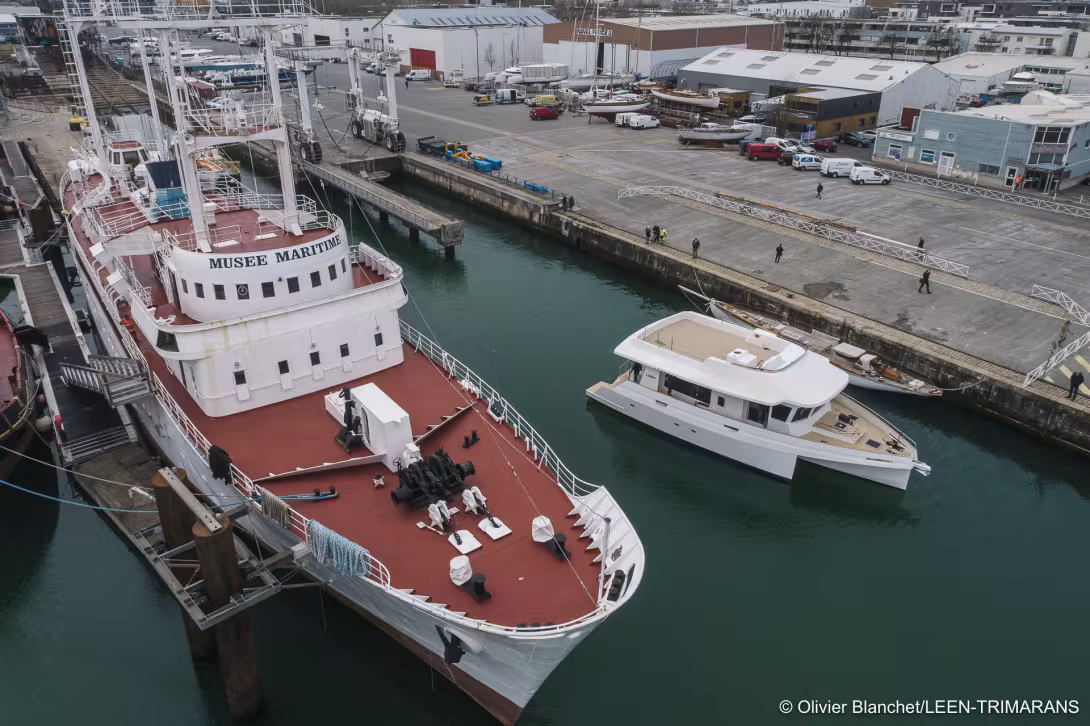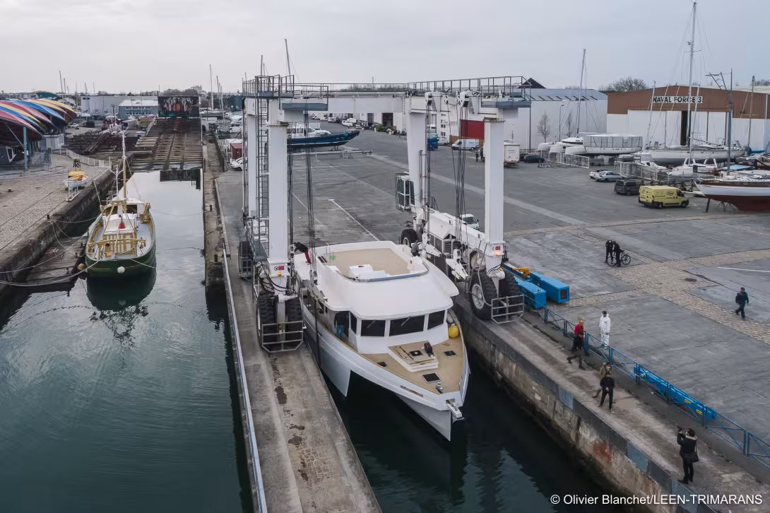 Le premier LEEN 56 a été mis à l’eau le 3 mars à La Rochelle. LEEN Trimarans, c’est NEEL à l’envers, mais c’est surtout la nouvelle marque de trimarans à moteur du constructeur spécialiste du trimaran hauturier.
