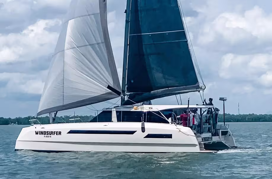 Etraves inversées, coques fines à la flottaison (1,05 m de largeur max), appendices soignés (dérives sabres ou quillons) et seulement 7,7 tonnes annoncées au peson prêt à naviguer sont autant de caractéristiques prometteuses : le Max 44SC, avec près de 100 m2 de surface de voilure au près, devrait se révéler très plaisant et rapide en navigation. Pour la propulsion, le chantier propose des moteurs diesel ou hors-bord. Ce catamaran est livrable en kits distincts dans l’optique d’une construction amateur. Un système de propulsion hybride est également proposé.