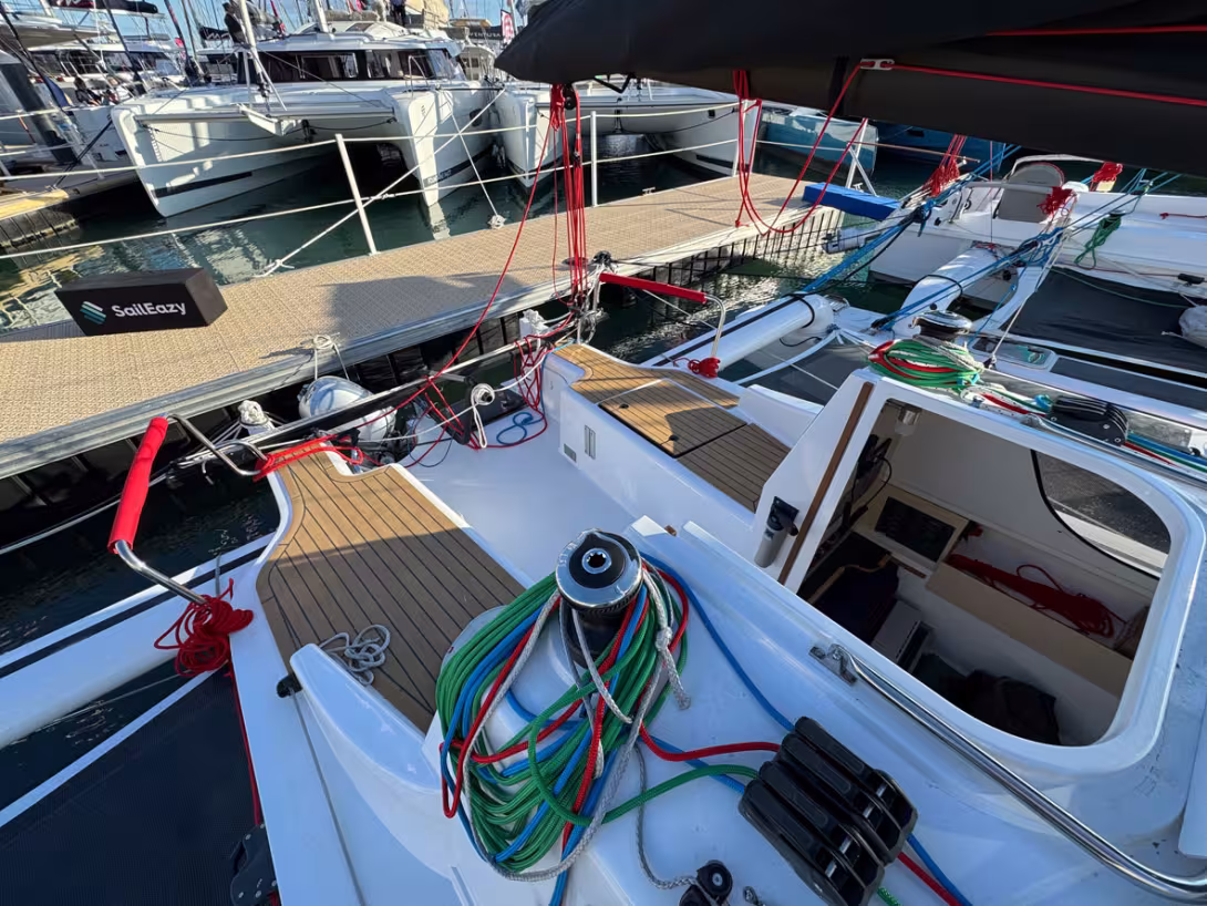 Toujours repliable, bien sûr, ce nouveau trimaran est logiquement bien plus moderne que son prédécesseur, ajoutant également une touche de confort et d’agilité. Les dérives relevables sont greffées sur les flotteurs, libérant la coque centrale. Quant au capot de descente, il dispose de 3 positions et peut être complété par une capote et un taud de soleil.