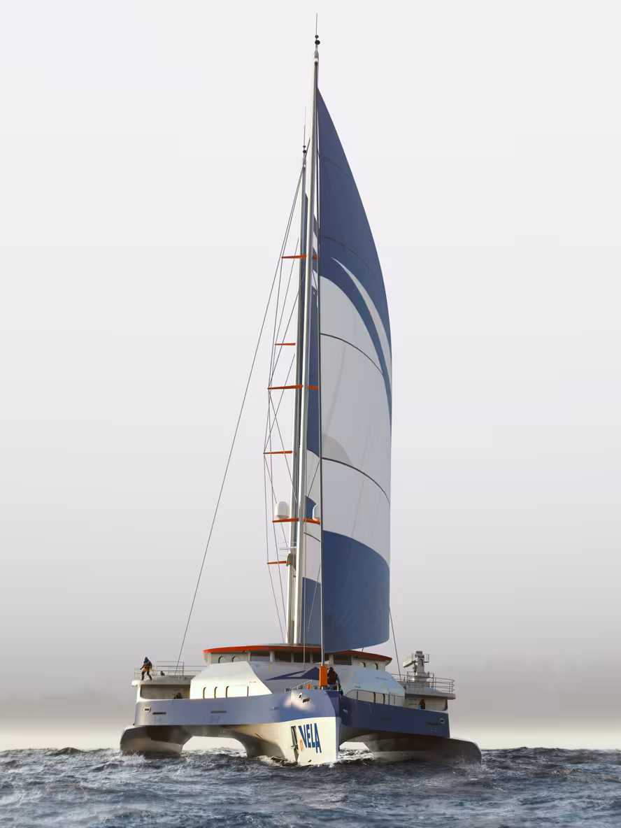 Ces rejets, qui représentent 3% du total, pourraient grimper à 17 dès 2050. Passionnés de voile et convaincus que le retour au transport de marchandises à la voile fait partie de l’avenir, cinq entrepreneurs dont le marin François Gabart ont créé VELA en 2022 pour monter un projet viable. Aujourd’hui, l’entreprise réunit 1 000 personnes, lesquelles travaillent sur la construction du plus grand trimaran à charge du monde dont la mise à l’eau est prévue pour début 2026. Pour relever ce défi, VELA a fait appel à des entreprises dans le monde entier pour élaborer des pièces uniques encore jamais réalisées.
