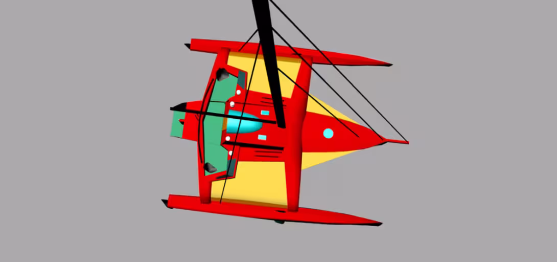 On notera que la motorisation préconisée est un inboard à arbre d’hélice afin d’assurer efficacement les entrées et sorties de port – mais également la recharge des batteries. Dans le même esprit, un petit safran sur la coque centrale complète les deux autres sur les flotteurs : la pelle est positionnée derrière le flux de l’hélice pour améliorer la manœuvrabilité au moteur.