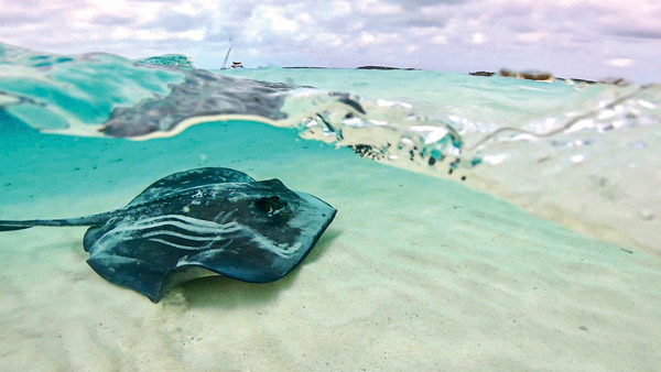 Dans les eaux peu profondes et transparentes des Exumas, il est possible de voir évoluer les raies à ses pieds !