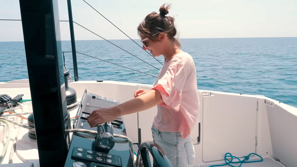 Au matin, après une nuit moins calme et reposante que prévu, Curiosity peut reprendre la mer. « Nous n’avons pas très bien planifié ce voyage, tout se fait en dernière minute », reconnaît Jason. « Nous nous appuyons sur les conditions de vent et nous nous adaptons chaque jour au fur et à mesure de notre avancée. » Le plan initial était de contourner l’île de Negros par le nord afin d’atteindre Cebu et le chantier HH Catamarans pour quelques réglages nécessaires après ces premières semaines de navigation avec une unité neuve. Cependant, de forts courants les attendent sur cette trajectoire, aussi décident-ils finalement de se diriger vers le sud de Negros. Si cette nouvelle option ajoute 50 milles à leur trajet elle leur permettra de mouiller l’ancre sans danger s’ils le souhaitent, et surtout de naviguer sereinement sans avoir à se soucier des problèmes de moteurs qui surchauffent et de pas d’hélice desserré qu’ils rencontrent actuellement et qui seront justement révisés une fois arrivés au chantier. « Il n’y a pas grand-chose à redire sur ce bateau. Les moteurs sont notre priorité absolue, et je sais que c’est aussi la priorité de HH. Mais ce genre de courants est exactement le scénario dans lequel vous voulez pouvoir compter sur vos moteurs, et pour l’instant, ce n’est pas le cas. J’ai hâte que ce soit réparé ! » avoue Nikki.