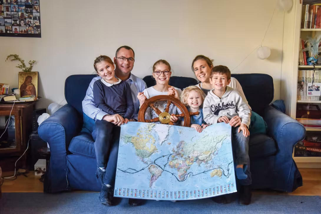 Dans quelques mois, nous hisserons les voiles de notre Nautitech 46 tout neuf pour accomplir notre rêve de grande boucle autour du globe via Panama et Bonne-Espérance. Notre agenda, qui prévoyait un départ tranquille en août vers le Maroc et les Canaries, a été mis à mal par les événements sanitaires qu’a connus la planète. En effet, le chantier, tout en maintenant sa production, s’est retrouvé dans l’incapacité de garantir la livraison de notre catamaran pour juillet. Ne pouvant nous résoudre à nous départir de notre entrain, nous en avons profité pour accepter avec joie la possibilité qui nous a été faite d’exposer notre bateau au Grand Pavois de La Rochelle fin septembre 2020. Cela nous offre de belles perspectives pour continuer à organiser notre départ, et surtout pour échanger avec les visiteurs sur notre projet et sa mise en œuvre. Des sujets aussi variés que l’école à la maison, le choix des options, en passant pas les formations et le budget de préparation. Ce projet, cela fait seize ans qu’il est sur les rails. Depuis notre rencontre, nous partagions un objectif : le jour où notre famille serait complète et suffisamment grande, alors nous lâcherions tout pour partir et faire découvrir le monde à nos enfants, à la voile. Notre vie parisienne jusqu’à présent très active nous plaisait, nous ne manquions de rien. Mais l’idée était toujours là, et un beau soir d’été, nous avons posé une date. Depuis, plus rien n’a pu nous arrêter, et c’est un gros rétro-planning qui nous a servi de guide ces deux dernières années afin de tout mettre au point. Le confinement nous a même permis de nous entraîner en grandeur presque réelle : école à la maison, courses dignes d’un avitaillement pré-transatlantique, confection de pain au levain, bricolages et activités manuelles en tous genres, visio avec nos familles… Il ne manquait que la mer et les embruns ! Notre aventure commencera donc finalement début octobre. Et nous avons hâte de vous la faire partager – et peut-être de vous rencontrer au Grand Pavois ?