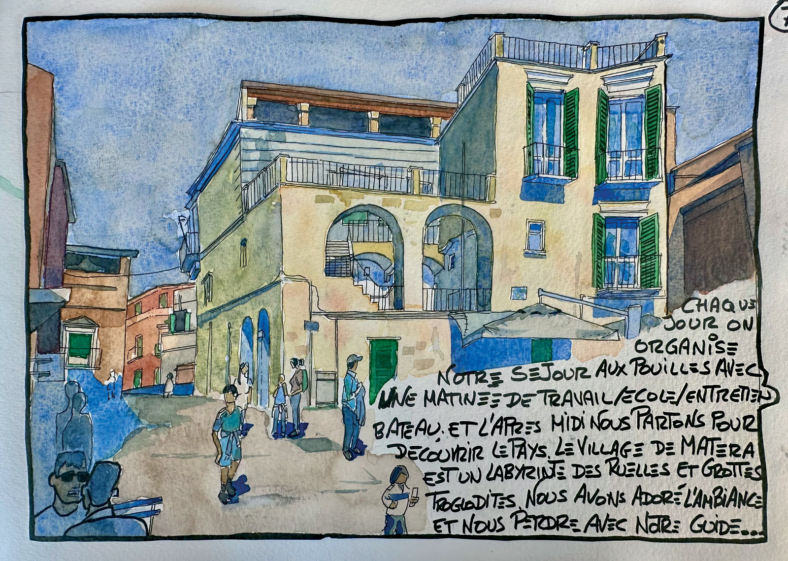 Nous parcourons ainsi routes et chemins du nord au sud et d’est en ouest. Nous nous imprégnons des parfums, de la terre rouge, des oliviers, des figuiers, des citronniers. Nous comprenons une partie de l’histoire des Pouilles en sillonnant Alberobello et Matera, autrefois durement touchées par la pauvreté, et dont nous admirons aujourd’hui la beauté. Nous visitons des châteaux et imaginons les batailles contre les Turcs à Otrante et Bovino, où seulement une poignée d’habitants sont restés. Je me baigne dans les eaux turquoise mais encore glaciales de la plage de Gallipoli. Je ne peux pas résister, la tentation est trop forte !