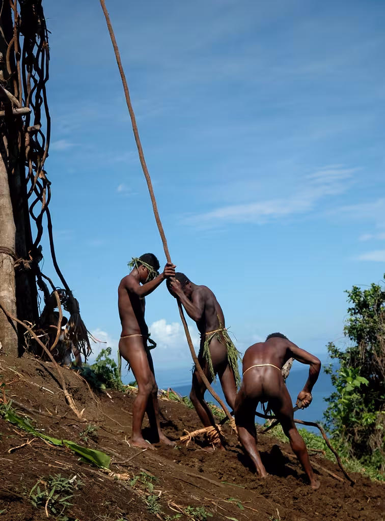 Nous voulions absolument assister à un rite ancestral, une manifestation coutumière spectaculaire : le saut du N’gol. Le Néo-Zélandais Alan John Hackett n’a donc pas vraiment inventé le saut à l’élastique en 1987, il a seulement adapté et modernisé une pratique vue au Vanuatu, non loin de son île natale, et plus particulièrement à Pentecôte.