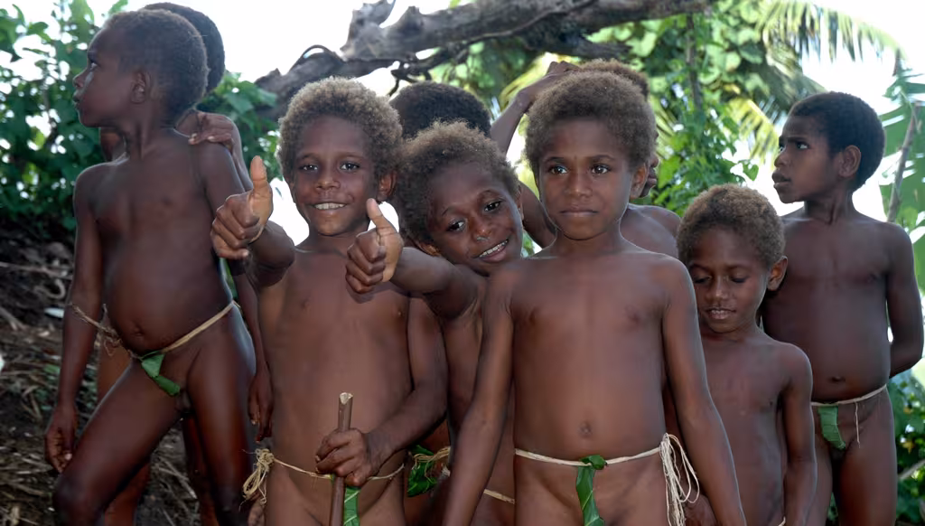 Le saut du N’gol est certainement le rite indigène le plus spectaculaire du Vanuatu. En français, on parle de plongeon terrestre, en anglais, de land diving. Ce rite initiatique a peut-être été pratiqué dans d’autres îles des anciennes Nouvelles-Hébrides, mais depuis des décennies, il n’a subsisté que dans le sud de l’île de Pentecôte. Et plus exactement dans trois villages de la côte sud-ouest de l’île, dont deux sont anglophones et un seul francophone. Le saut du N’gol, qui est lié dans la coutume à la récolte de l’igname – le légume le plus prisé dans ces îles – mais aussi à la qualité de la fibre végétale utilisée pour le saut, n’est pratiqué que pendant 2 mois de l’année environ, de mi-avril à mi-juin. Il a normalement lieu aussitôt après la récolte des premières ignames. Nous nous sommes renseignés lors de notre passage à Lamap (Port-Sandwich) sur l’île de Malekula. Le village francophone qui nous intéresse s’appellerait Saint-Joseph, et il serait situé dans l’une des baies les plus sud de la côte ouest de Pentecôte. Nous sommes à la bonne saison, et à bord de Jangada, nous décidons de localiser et de rallier ce village. Nous quittons la baie de Port-Sandwich et faisons route sur le nord de l’île d’Ambrym en traversant le panache de fumées éruptives de son puissant volcan, et jetons l’ancre quelques heures plus tard dans Homo Bay, au sud de Pentecôte. Mais, à terre, nous découvrons un village anglophone, et l’on nous indique que Saint-Joseph est plus au nord, à quelque 2 heures de marche par la piste côtière. Le lendemain, nous appareillons vers le nord et j’envoie Timothée et Marin, en annexe, pour enquêter le long du rivage auprès des pirogues de pêche et des indigènes, souvent des enfants, que l’on aperçoit sur la grève. Par VHF, ils me guident, et nous finissons par mouiller devant le village de Saint-Joseph, dans Wali Bay. Un village que l’on n’aperçoit pas du bord, car il est établi à quelques centaines de mètres à l’intérieur du rivage, en bordure d’une ravissante petite rivière. Nous sommes accueillis par Joachim, l’un des fils du chef du village, Alexandre, que nous allons saluer. Le chef, comme beaucoup d’anciens, parle un bon français, et nous apprécions de séjourner dans un village où pratiquement tout le monde, enfants compris, parle notre langue. Ici, les villageois sont tous catholiques. Ce village est très propre, et les animaux sont tenus à distance. La présence de la rivière à proximité et l’abondance de l’eau douce y sont sans doute pour beaucoup. Nous donnons quelques habits d’enfants, quelques livres pour Horatio, l’instituteur, que le chef distribuera. Nous recevons en échange des pamplemousses, des fruits de la passion, des avocats. Bientôt, chacun au village connaîtra notre prénom. Au mouillage, le matin, quand nous ne nous rendons pas assez vite à terre à cause de la séance de CNED des enfants, ceux du village, qui eux sont en vacances pour 2 semaines, se rassemblent sur la plage de galets et appellent sans cesse en chœur "Timothée ! Marin ! Adélie !". Avec un accent inimitable et tellement attachant… Chaque matin, vers 06h00, pendant que ma petite tribu à moi dort encore, un enfant m’attend sur la plage avec un pain frais confectionné pour nous par le chef. Nous sommes acceptés par la tribu, et Joachim, probablement chargé par son père de cette mission, nous fait savoir que, si nous le souhaitons, nous pouvons rester plusieurs semaines à proximité du village : nous sommes les bienvenus. Cela fait chaud au cœur. Il faudrait pouvoir rester plusieurs semaines, effectivement, pour mieux partager, un temps, la vie simple mais heureuse, et généreuse, de ce petit village de Pentecôte. Hélas, malgré quelques progrès depuis notre départ, il faut bien reconnaître que nous voyageons encore comme des étoiles filantes… Plus j’avance en âge, plus je me dis que la vraie liberté consiste à posséder le temps. Les possessions matérielles, à côté, sont insignifiantes.