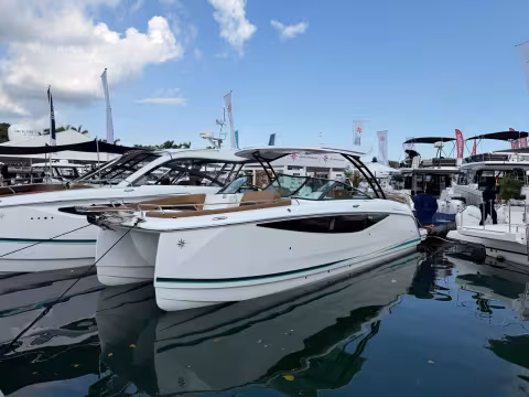 Ce tout nouveau modèle à console centrale et pont walkaround reprend la coque du HammerCat 35CC (40 exemplaires produits). Le pont, les plats-bords et la cabine/timonerie sont donc entièrement nouveaux ; ils ont été conçus en étroite collaboration avec Du Toit Yacht Design.