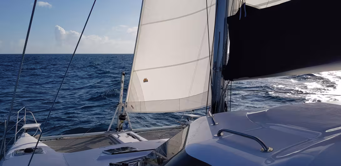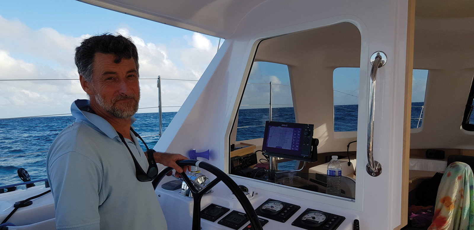 Notre journaliste Kevin Green à la barre du Seawind 1260.