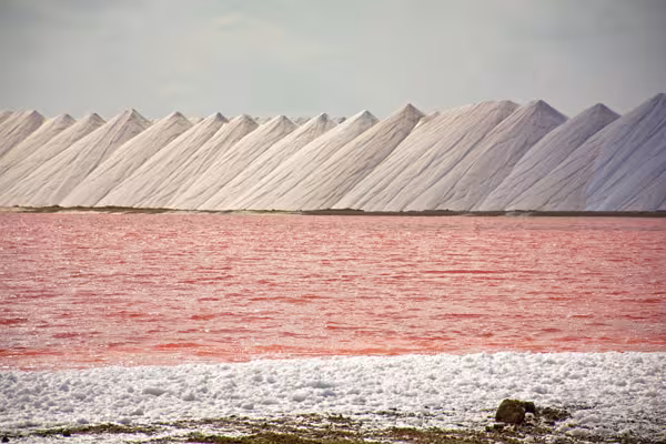 Bien connus sur l’île, les lacs roses sont exploités pour recueillir du sel.