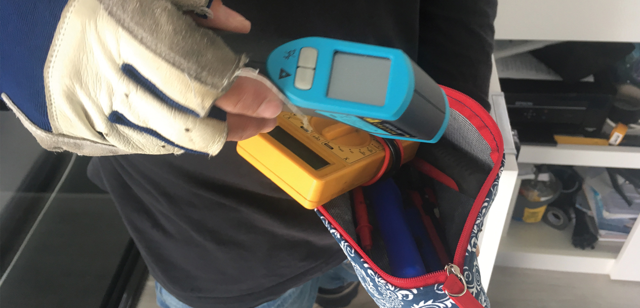 1 multimètre (NIMEX) Ni-6266 avec pince ampérométrique - 1 multimètre (MEGATRON) MS 8221 A - 1 gros fer à souder pour épissures. Typ. HSG-O 60 W - 1 petit fer à souder pour électricien 19 W (EXP) - 1 thermomètre Laser IR-8520 (- 32°C à + 520°C) - 1 paire de gants de sécurité d'électricien (1000 V) - 5 tournevis d'électricien (1000 V) - 1 pince coupante d’électricien (1000 V) - 1 pince à sertir les cosses - 1 pince à dénuder - 1 coffret scies cloche - 1 coffret emporte-pièces - 1 petit rabot - 1 équerre graduée - 2 pieds à coulisse - 1 agrafeuse - 1 coffret de tarreaux et filières - 1 tourne à gauche à cliquet - 1 fraise conique diamètre 30/16 - 1 jeu de cales - 1 rapporte-filets - 1 fraise rape cylindrique - 2 coffrets de forets métal HSS diamètre 1 à 13 - 2 scies à métaux - 1 coffret de forets inox diamètre 1 à 10 - 1 coffret à cliquets + douilles de 8 à 32 mm - 1 coffret scie sauteuse avec 10 lames - 1 caisse à outils à 4 tiroirs (No1) - 1 perceuse AEG 570 W 220 V - 1 perceuse, visseuse + chargeur + 3 accus + lampe - 3 tournevis cruciformes - 5 tournevis plats - 1 pince multiprise - 1 pince coupante - 1 pince universelle - 1 pince à bec - 2 clés à molette (200 mm) - 1 pince étau - 1 coffret à cliquets d'électricien - 1 coffret d'adaptateurs d'électricien - 1 mètre ruban (2 m) - 1 cutter - 1 couteau d'électricien - 1 ciseau d'électricien - 2 clés plates mixtes de 6 à 32 mm - 1 clé plate à fourche 22-20 - 1 clé plate à fourche 30-32 - 1 jeu de clés plates de 6/7 à 18/19 - 1 jeu de clés Torx - 1 jeu de clés Allen de 1,5 à 10 - 1 lime tire-point - 1 lime plate - 1 lime queue de rat - 1 rape à bois demi-ronde - 1 rape à bois queue de rat - 1 petit ciseau à bois - 1 maillet - 1 marteau 300 g - 1 pierre à affûter - 1 brosse métallique - 1 brosse laiton - 2 petits serre-joints - 1 clé à griffes 8” - 1 clé à griffes 12” - 1 pince étau 520-10” - 1 clé à mollette 300 mm - 1 clé à mollette 12” - 1 clé anglaise 105.280 (Facom) - 1 clé à sangle diamètre 60 (USAG)