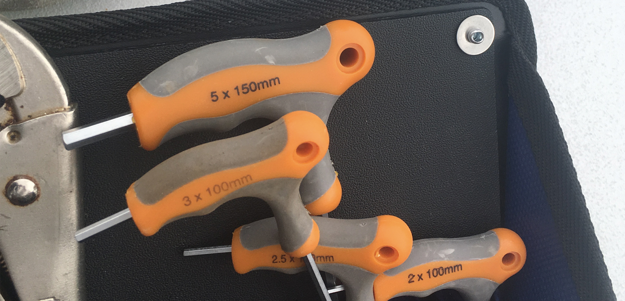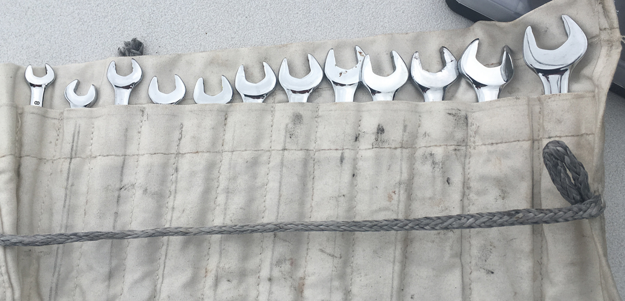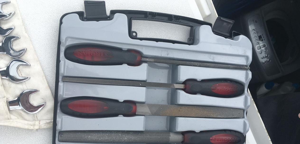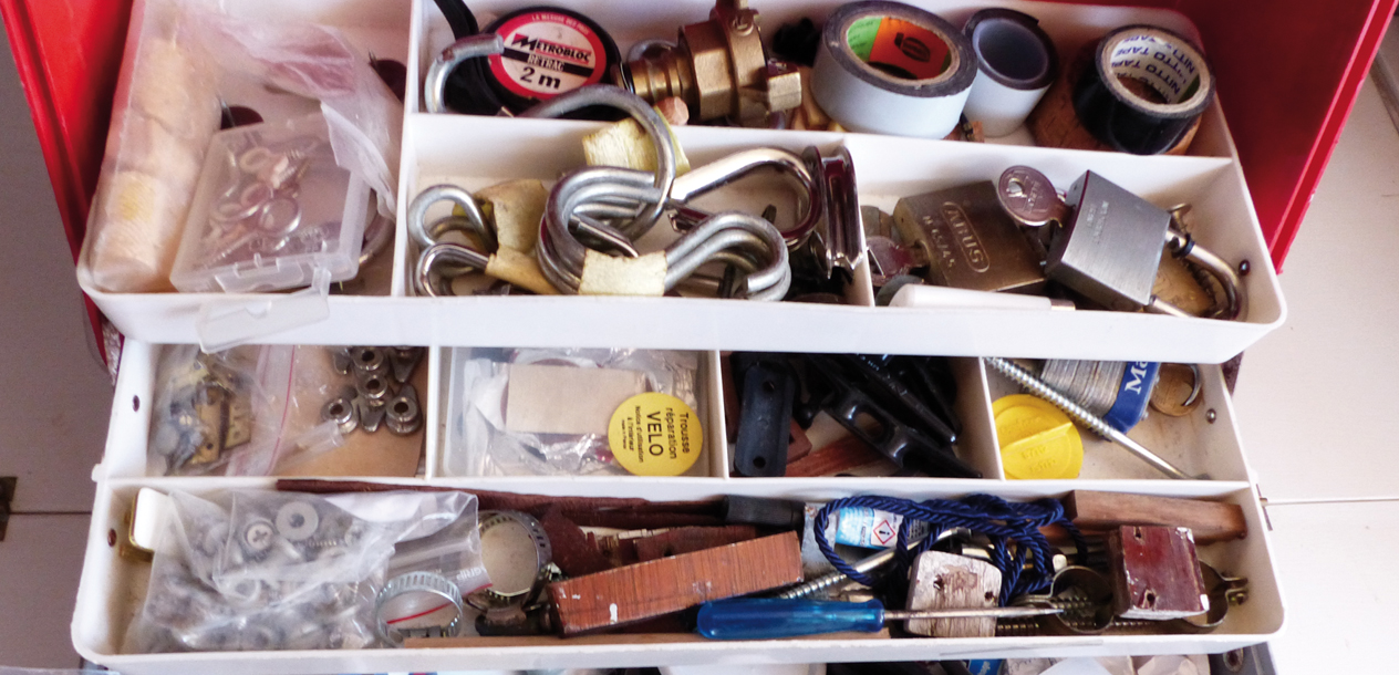 Tout d'abord, il est nécessaire d'avoir une place dédiée à bord pour vos outils de base et de première urgence. Ils doivent être à portée de main pour intervenir rapidement, y compris en navigation. Réservez un tiroir du carré ou un coffre de cockpit pour stocker une ou plusieurs sacoches contenant quelques incontournables : tournevis à manche court et rallonge à tête multiple, y compris Allen ; clef à molette ; clef à douilles multiples ; jeux de pinces : multiprise, étau, à bec, tenaille, et électricien ; un marteau et un maillet ; une scie à métaux avec de bonnes lames et un porte-lame pour scier dans les endroits difficiles d’accès ; une chignole à main ou une petite perceuse visseuse électrique 12 V avec des forets bien affûtés, métal et bois ; jeux de limes et râpe à bois ; papier de verre, ciseaux, cutter ; petit tournis électrique et multimètre pour diagnostic ; ruban mètre ; tube super glue ; ruban adhésif, hydro et métal.