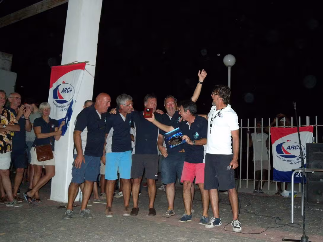 Un peu avant 23 heures, le 10 novembre, nous coupons la ligne d’arrivée, premiers de la flotte de 72 bateaux. Nous profitons d'un super accueil d’Anna et des "yellow shirts" de l’ARC, champagne et bière locale…