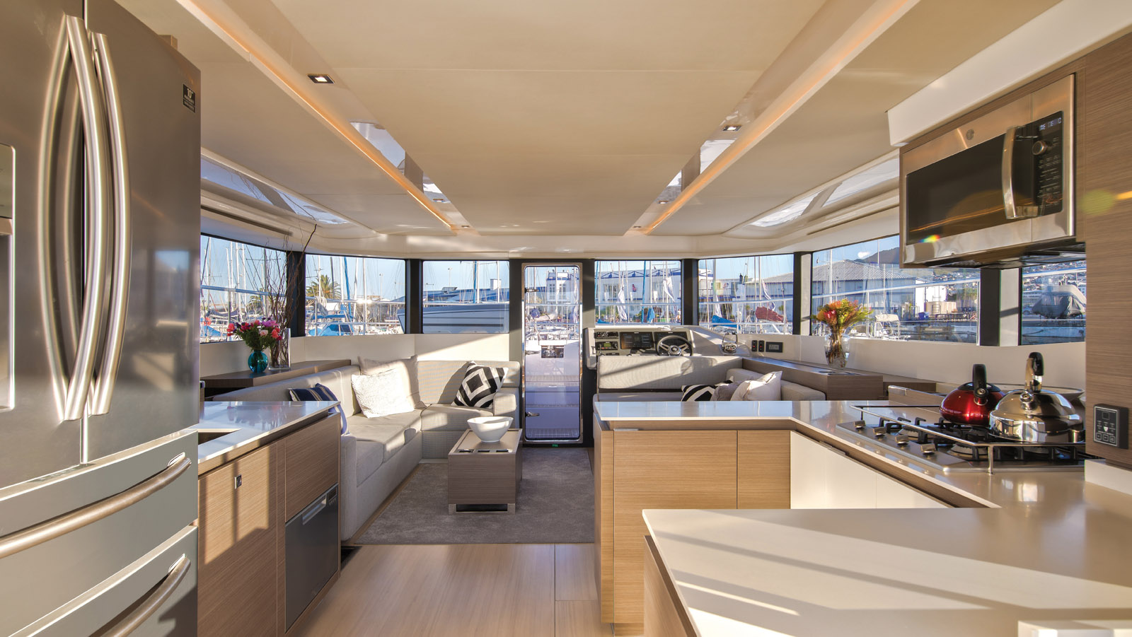 Laurent Bourgnon mettait en avant que son budget carburant compensait largement le prix des voiles. Un argument a priori discutable, puisque la plupart des catamarans à moteur, à taille égale, sont proposés à un prix supérieur à celui de leur équivalent à voile. Un delta qui se situe autour de 15 à 20 %. Certes, les gros moteurs coûtent plus cher que des petits, d’accord, la finition de ces modèles intègre souvent en série un groupe électrogène, du teck sur le pont et des matériaux de finition plus luxueux… mais il y a quand même un mât équipé, des voiles et tout l’accastillage en moins ! Bref, on pourrait soupçonner un choix tant commercial que marketing – plus de standing, plus de marge… Pas si vite : la structure d’un powercat est bien plus rigide – et donc plus coûteuse à réaliser. A la décharge des chantiers également : les volumes de vente restent à ce jour assez faibles, soit 15 % du marché du catamaran de croisière – ce qui correspond en gros à 200 unités de plus de 12 m dans le monde en 2019.