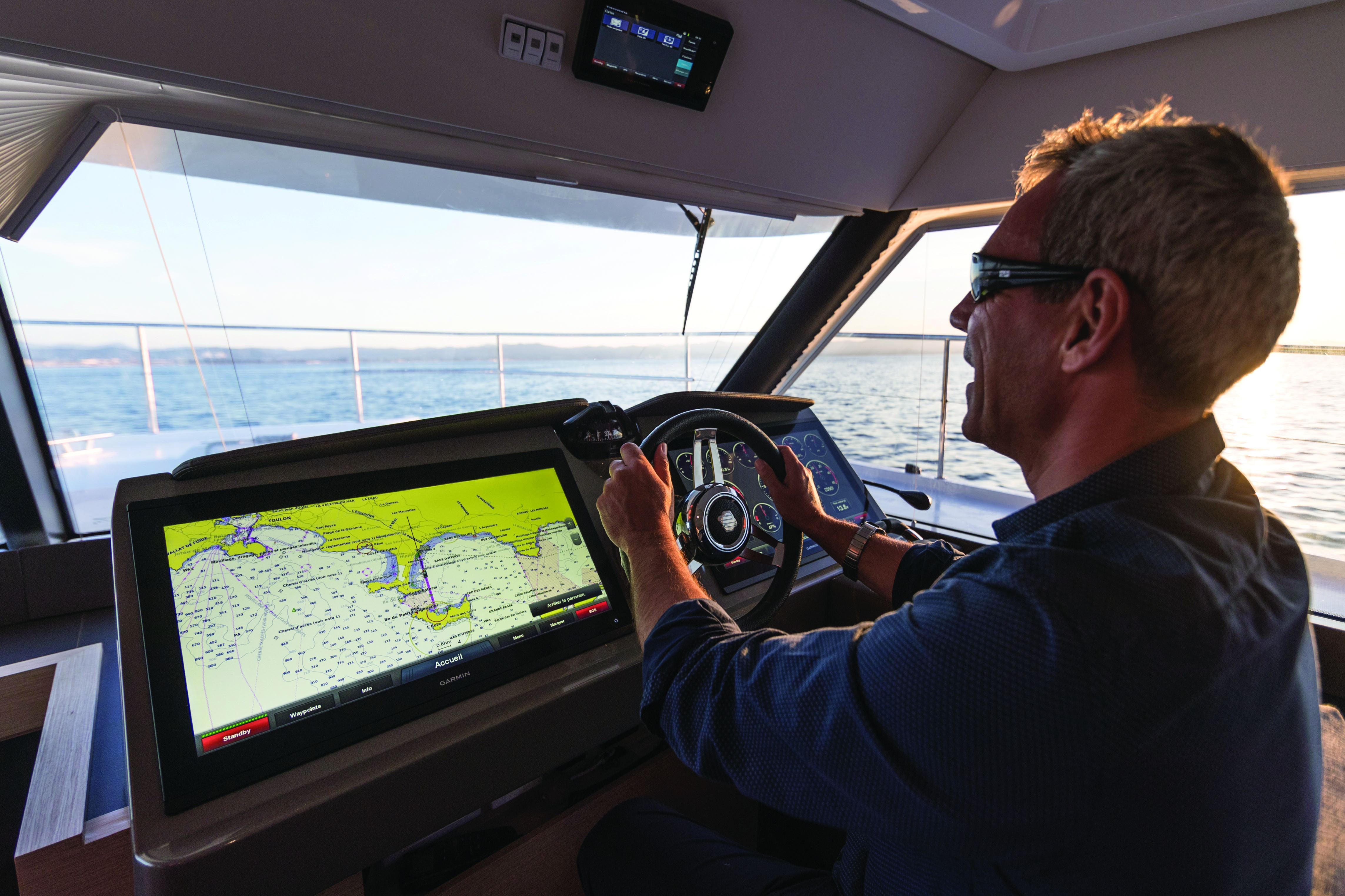 Les chantiers ont donc bien compris l’intérêt de proposer des bateaux tout confort, mais simples à utiliser, à manœuvrer et à entretenir. Ces unités peuvent en effet séduire des nouveaux venus dans l’univers nautique, mais également des skippers pragmatiques fatigués ou lassés de gérer un voilier. Et la grande croisière ? Peut-on disposer d’une autonomie suffisante pour boucler de longues traversées ? Le budget carburant risque-t-il exploser ? L’expérience de Laurent Bourgnon, parti il y a plus de 10 ans en famille à bord d’un Sunreef 70 Power, apporte d’intéressants éléments de réponse. L’ancien coureur au large, disparu tragiquement en 2015 au cours d’une plongée, a opté pour un très confortable catamaran à moteur après une longue étude des possibilités offertes par ce support. D’abord un constat : lui seul sait naviguer. Se concentrer sur la route, la météo et l’entretien courant du bord lui convient très bien. Faire une croix sur la gestion des voiles et les contraintes de trajectoires liées à la direction du vent ? Parfait. Son Jambo, luxueuse unité conçue à partir de son cahier des charges, était équipé de deux moteurs marinisés de 420 chevaux chacun. La cartographie électronique a été entièrement revue afin d’optimiser la consommation. Car c’est bien sûr ici qu’on attend les catas à moteur à la bouée. Si c’est pour engouffrer des centaines d’euros par jour dans les réservoirs, non merci !