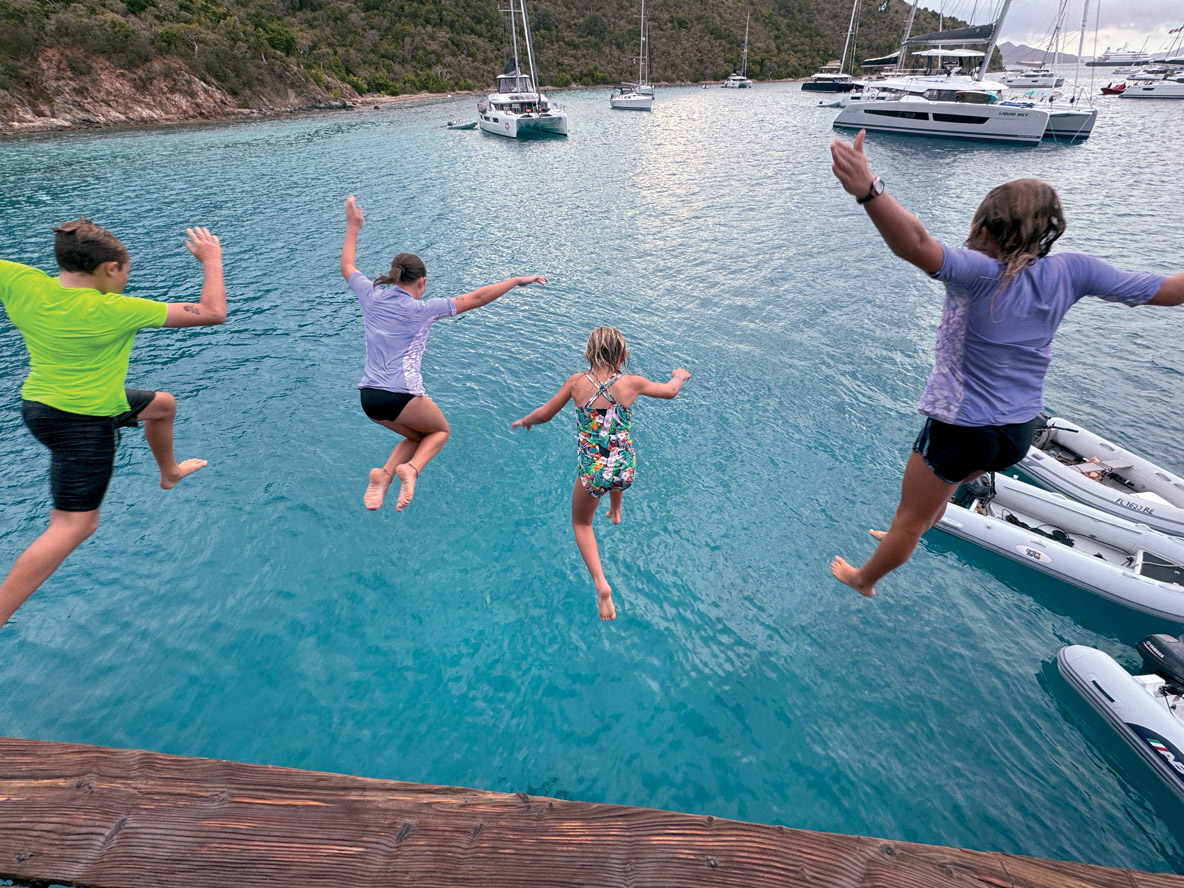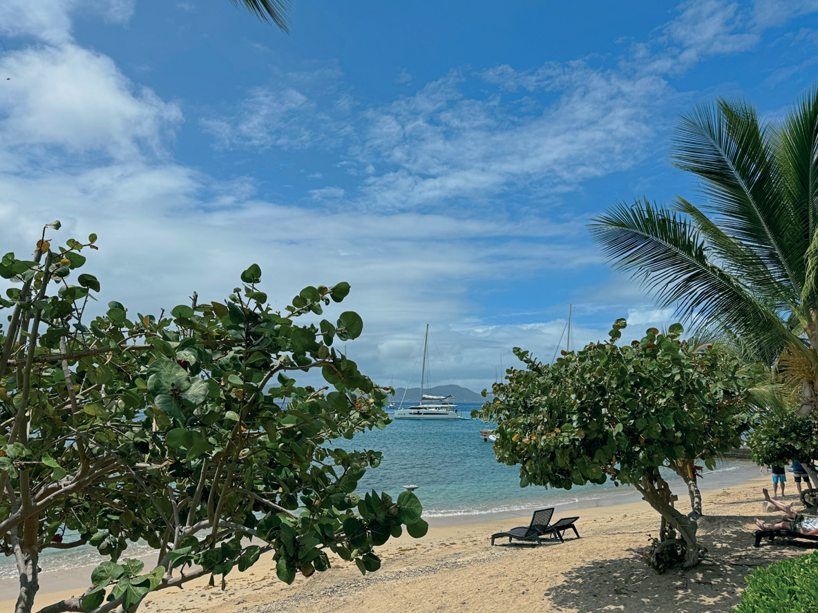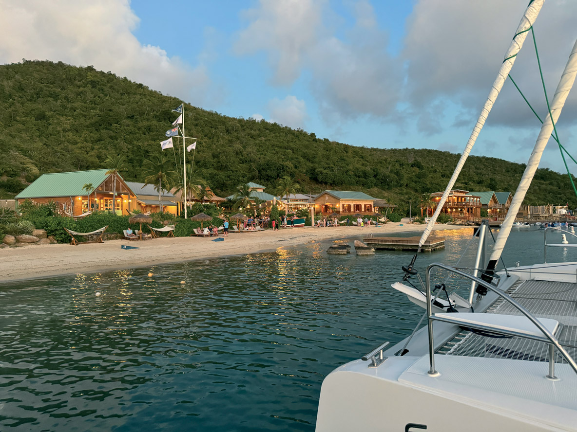 On resterait bien encore un peu dans ce mouillage, mais le Fountaine Pajot Owners Rendezvous impose son timing : il s’agit d’accueillir les 120 participants à l’occasion d’une première soirée au bar-restaurant de plage Peg Leg, sur la base de Nanny Cay. Pour commencer, je fais la connaissance de Mary et Ann, qui embarquent à bord d’Ojala ; toutes deux travaillent pour LaVictoire Finance, une société américaine spécialisée dans le financement de bateaux.
