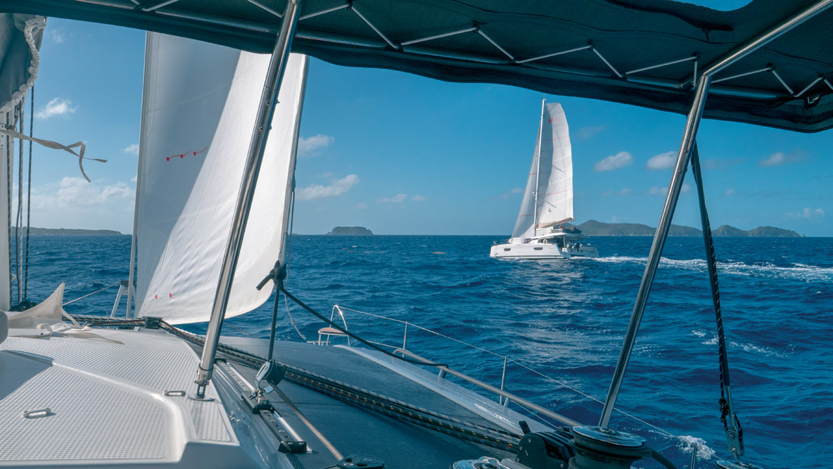 24 heures après mon arrivée, Romain Motteau, directeur délégué de Fountaine Pajot, me rejoint à bord ; le lendemain, c’est au tour de Jay Pennington, directeur opérationnel des bases américaines de Waypoints, de poser son sac à bord ; Jay investit la cabine arrière bâbord – elle dispose d’un accès direct sur le cockpit, ce qui est bien pratique quand on endosse le job de Capitaine !