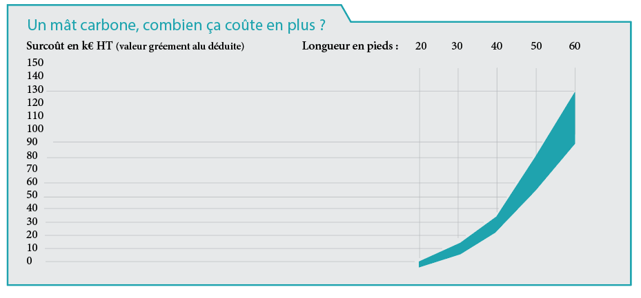 Revenons au gréement : si l’élancement du plan de voilure, la surface de voile disponible, la qualité des coupes des voiles et des tissus retenus et enfin les possibilités de réglages influent sur les performances et la sécurité d’un multicoque, on dispose aujourd’hui d’un nouvel atout – le mât carbone.