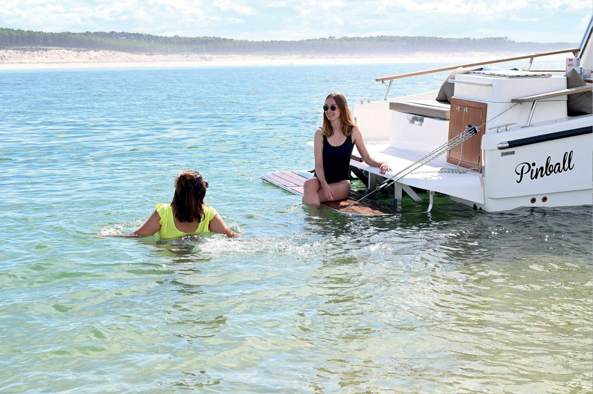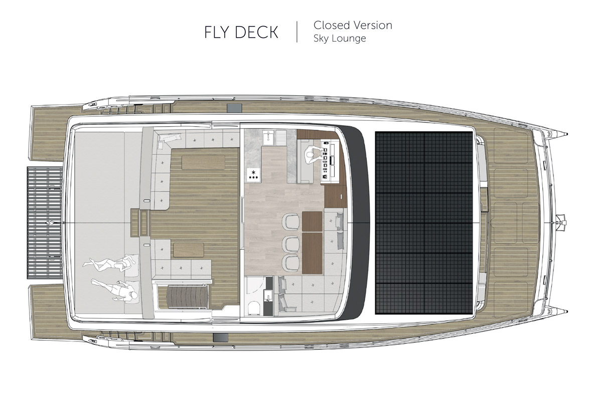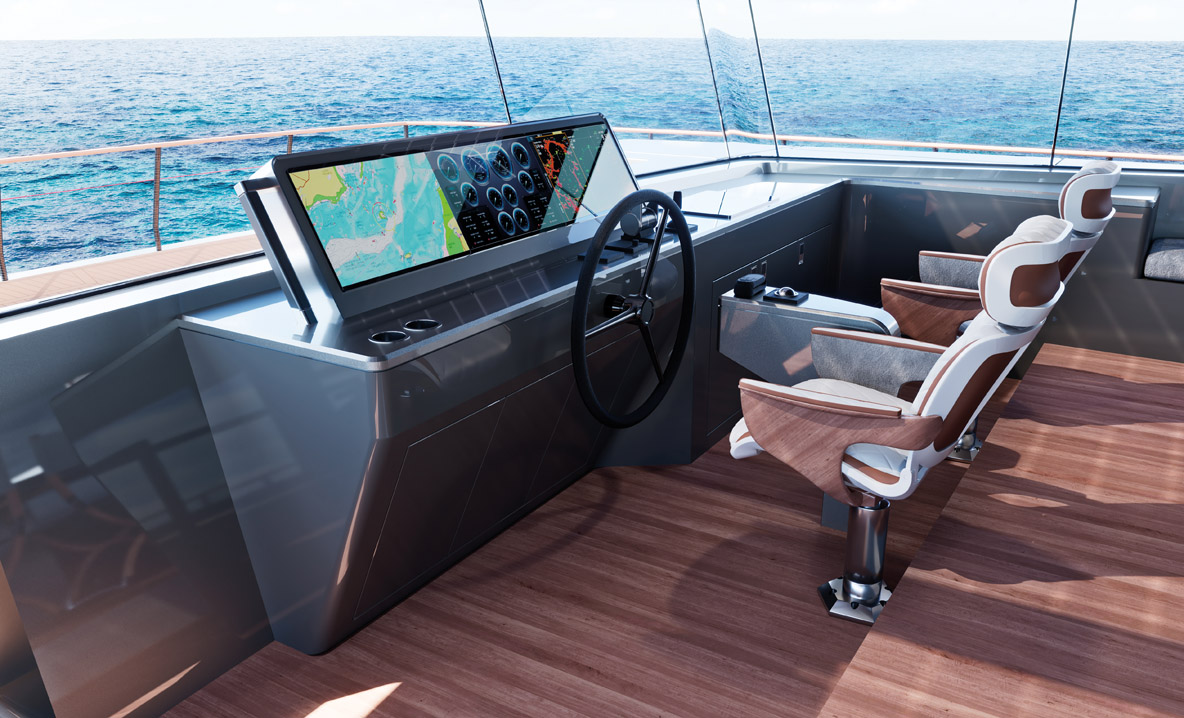 Le constructeur insiste sur la grande autonomie de 1 000 milles à 7 nœuds (avec toutes sources d’énergie), en partie obtenue grâce à un « régime minceur » drastique, puisque le nouveau Elight 44 affichera seulement 9,5 t au peson, contre 11 précédemment. On appréciera également le système Station Keeping qui permettra de se passer de mouillage dans la plupart des situations et du Joystick Docking si pratique à l’heure d’apponter. Le constructeur propose également deux modèles bien plus grands, l’Elight 60 et l’Elight 70.