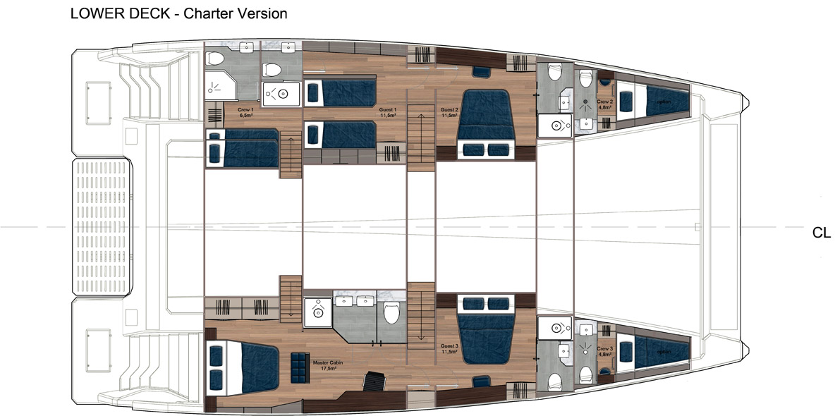 Entièrement personnalisable, le Sunreef Supreme 70 Eco offre un choix infini de solutions d’aménagement, y compris la possibilité d’installer une suite Propriétaire avec vue mer au niveau du pont principal.
