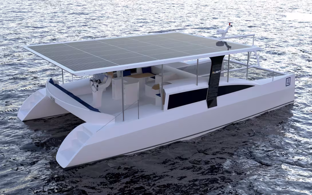 Grâce à la combinaison d’une grande surface de panneaux solaires, d’un parc batteries de 160 kWh et de deux moteurs de 80 kW, le 40 devrait être capable d’assurer une autonomie illimitée jusqu’à une vitesse de 5/6 nœuds. Pour tenir longtemps la vitesse de croisière cible de 10 nœuds, le groupe électrogène finira par être mis à contribution.