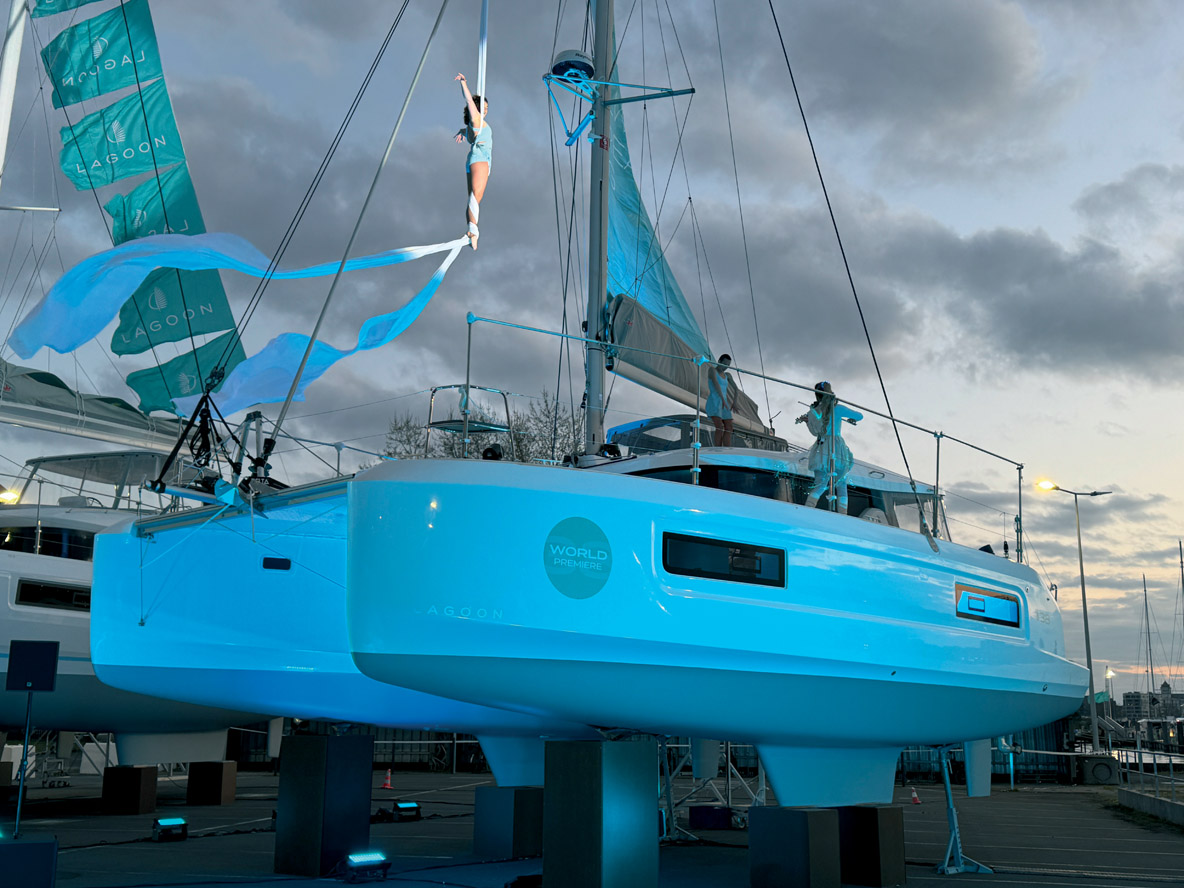 Présenté en mode VIP sur le terre-plein du chantier le 12 mars dernier à Bordeaux, le plus petit des Lagoon va donc être dévoilé pour la première fois au public lors de l’IMS. Ce nouveau modèle très attendu saura-t-il remplacer l’iconique 380 ? Voici en tout cas
