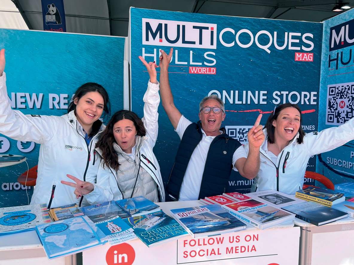 Comme chaque année, toute l’équipe de Multicoques Mag sera présente à l’International Multihull Show sur le stand H2-38 – venez nous retrouver pour que nous fêtions ensemble les 40 ans du magazine. La revue spécialiste des multicoques à voile et des multipowers est en effet apparue en 1985 en version française, avant d’être diffusée également en anglais dès 1990. A l’époque, les adeptes des multicoques de croisière n’étaient pas légion – on mesure aujourd’hui l’incroyable succès de la formule !