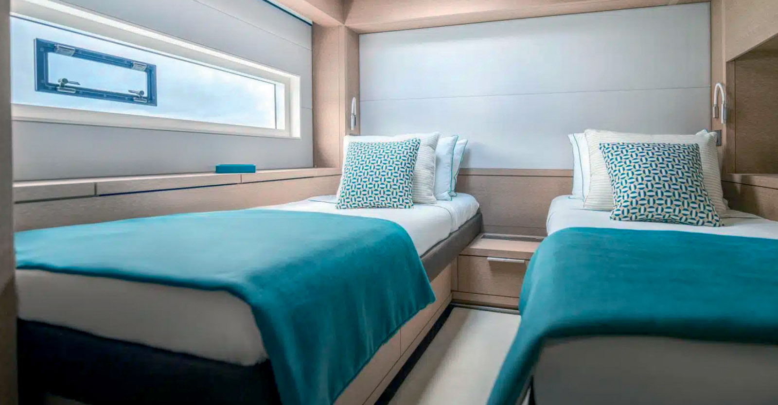 Le confort et l’ambiance des cabines sont un incontournable pour Ponant, dont la signalétique décorative est très codée. Le Seventy 7, s’il a été développé comme un yacht de série, préserve le choix d’une personnalisation très poussée et exclusive. Ceci a permis à Pascale Dexidour, la directrice design & expérience client, de collaborer avec les équipes chantier pour créer une atmosphère unique et à l’effigie de Ponant. Pour les aménagements, le Spirit of Ponant a été configuré avec six cabines – Spirit, Grand Spirit ou Prestige, selon les surfaces allouées. Les 12 clients privilégiés sont entourés de 4 membres d’équipage, lequel est composé d’un Capitaine, d’un marin, d’un chef sélectionné et formé par Ponant, et enfin d’un cabinier ou d’une hôtesse dont la mission est d’assurer le bien-être des passagers. Rien de très original dans l’univers des multiyachts de charter, me direz-vous, sauf que là, les tarifs débutent à 7 500 € par personne. « Gastronomie, cave et cocktails signés Ponant, room service, activités nautiques, tout est inclus », précise la compagnie. Cette approche qui fait de Ponant une référence incontestée dans l’univers des croisières de luxe est ici transposée à la grande plaisance avec cette offre complètement inédite dans cet univers. « La clientèle est très hétéroclite, mais provient, à plus de 70 %, des habitués de la compagnie, qui sont séduits par les volumes, le haut niveau de finition ainsi que ses qualités de navigation », ajoute Guillaume Le Brec.