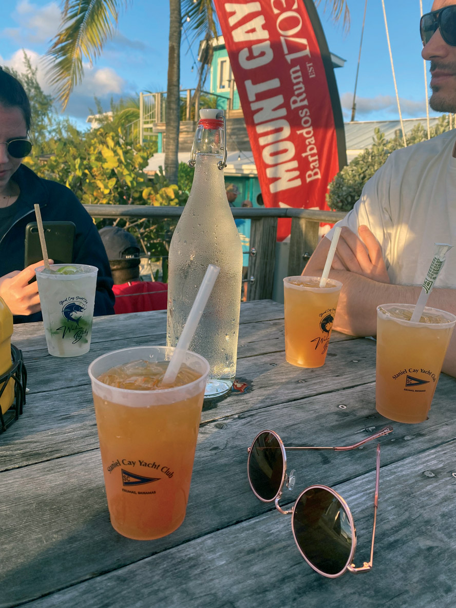 On a continué notre trajet jusqu’à Staniel Cay, où on a vu un restaurant/bar au bord de l’eau. C’était à mon avis une des meilleures soirées du voyage car, même si les tacos qu’on a mangés n’étaient pas super bons, l’endroit était trop beau et je me sentais vraiment comme une Robinson Crusoé. Petite différence notable cela dit, car Crusoé était seul sur l’île alors que nous étions entourés de bateaux de luxe et que le restaurant était plein à craquer, hahaha ! La musique était à fond et l’ambiance géniale ; j’ai passé une journée vraiment inoubliable.