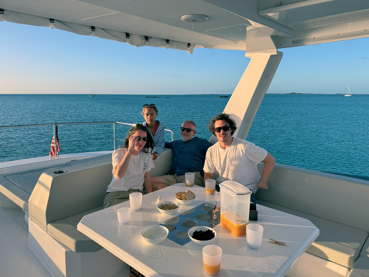 De ce que j’ai compris, le réservoir d’essence avait été rempli d’eau et c’est ce qui aurait empêché le moteur de redémarrer correctement. A défaut d’avoir pu faire notre balade entre les mangroves, j’ai pu bronzer une fois sur le flybridge avec de la musique à fond et en regardant l’océan qui semblait ne pas s’arrêter. Au coucher du soleil, tout le monde a fêté l’anniversaire d’Andy, en chantant en français et en anglais pour qu’il puisse bien comprendre