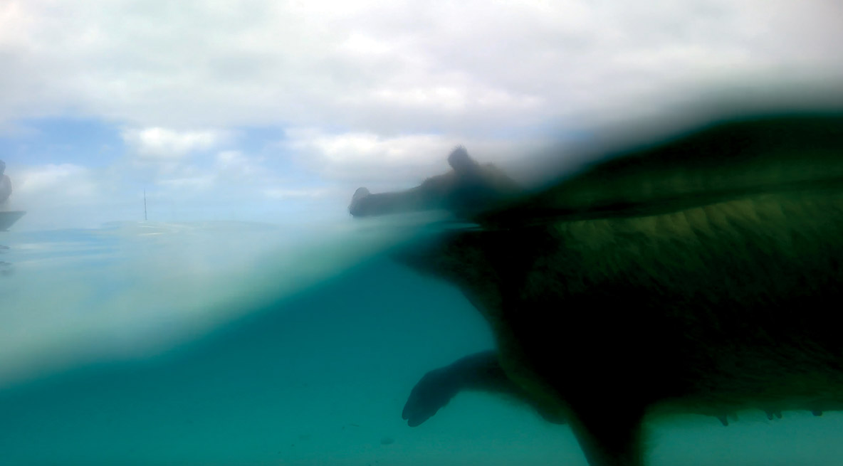 Mon père et Laura parlaient d’une vidéo où une touriste se faisait mordre les fesses par un des cochons et, en la visionnant ensemble, nous avions tous rigolé. Certains cochons étaient très imposants et avaient l’air d’être généreusement nourris par les visiteurs. Ils n’étaient pas tous dans l’eau : beaucoup étaient sur la plage en train de se faire caresser. Leurs poils n’étaient pas si sales grâce à la mer et leur odeur était supportable. Je m’attendais franchement à pire.