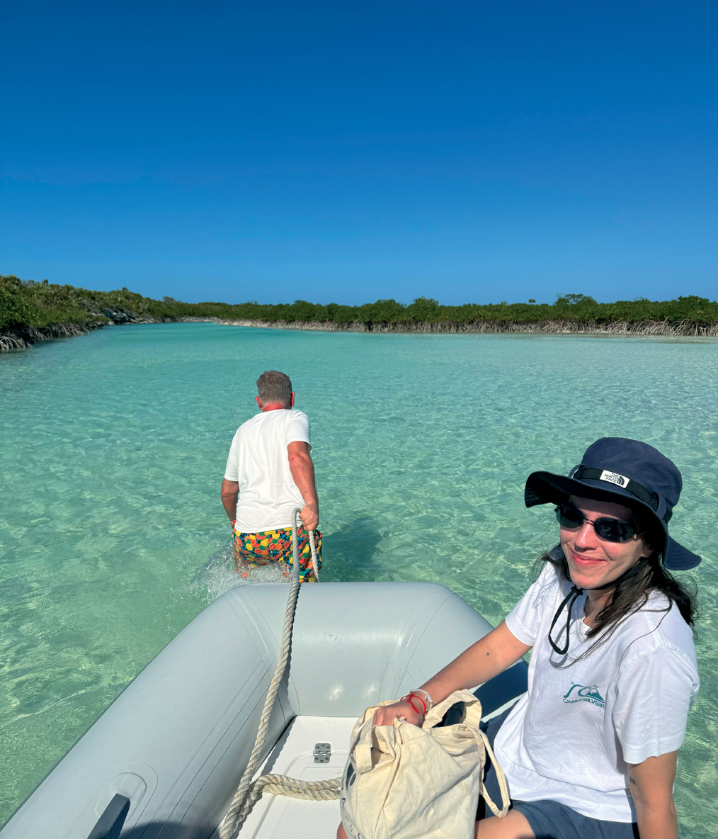 Cette journée, je l’attendais depuis super longtemps ! On allait nager avec des requins, et pour ça, on a navigué un peu le matin vers Compass Cay. Toute contente, j’attendais les autres avec mon père dans l’annexe. On ne faisait que rigoler ensemble lorsqu’on a vu une ombre noire passer à côté de nous. On a crié de joie quand on s’est rendu compte que c’était un vrai requin ! Bien évidemment, il était inoffensif, donc on s’est permis de mettre nos mains dans l’eau et de prendre plein de vidéos de lui en se baissant pour se rapprocher. Les autres sont arrivés assez tôt pour le voir, mais nous avons tout de même pu profiter du spectacle plus longtemps qu’eux. C’est ça de se préparer pendant une heure !