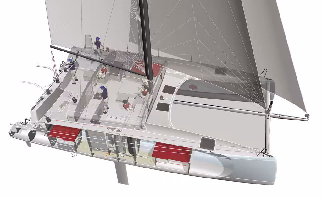 Voici un catamaran vraiment original qui nous vient d’Angleterre. Un bateau aussi à l’aise pour les passionnés de croisières familiales que pour des amateurs de runs en solitaire ou de course croisière. On apprécie particulièrement l’innovant espace carré-cockpit ouvert qui permet à chacun – les équipiers régatiers comme les enfants – de prendre plaisir à la navigation et de profiter à fond de l'ambiance – souvent survoltée – qui règne à bord...