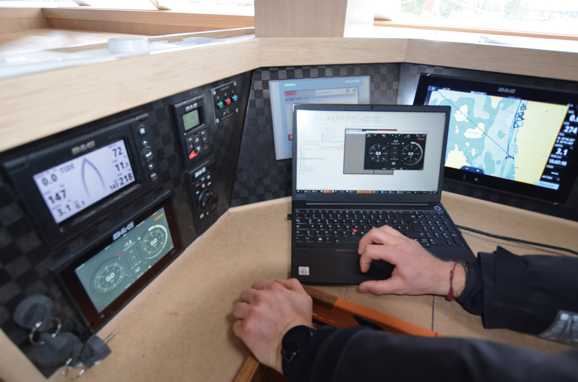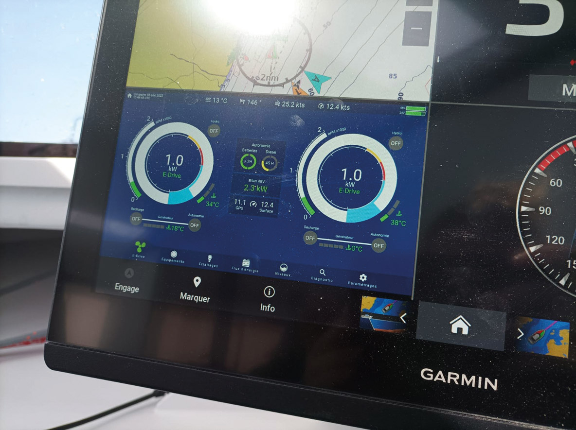 Les systèmes de gestion de l’énergie sont le centre névralgique des systèmes hybrides. On peut les manipuler de n’importe quel répétiteur, dedans ou dehors. Sur le Windelo, il est même repris dans le carré sur grand écran. Une manière efficace de sensibiliser tout l’équipage à ce nouveau mode de fonctionnement.